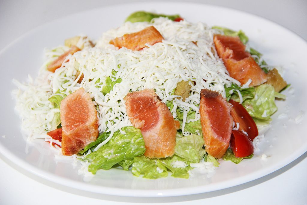 Цезарь с жареным лососем (200 гр) 410 руб. В корзину Жареный лосось,сыр Пармезан,помидор,сухарики,листья салата,соус Цезарь. 200гр Жареный лосось,сыр Пармезан,помидор,сухарики,листья салата,соус Цезарь. 200гр С этим товаром покупаютВ корзинуТяхан с курочкой (300 гр)350 ₽ В корзинуВ корзинуРамен с овощами (300 гр)300 ₽ В корзинуВ корзинуУдон со свининой (300 гр)350 ₽ В корзинуВ корзинуСоба с креветками в фирменном соусе (300 гр)350 ₽ В корзину