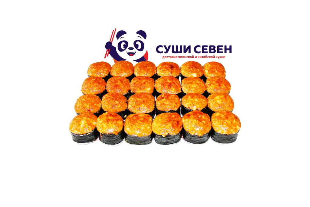 1) Запеченный ролл "Кампай" в остром исполнении - 240 гр (Лосось копчёный,зеленый лучок,сливочный сыр,кунжут,соус унаги,сырный соус)